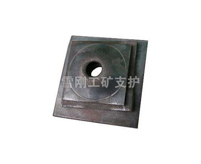 托盤一種用于礦山巷道、隧道,特別是煤礦巷道錨桿支護的托板,托板的正中有供錨桿穿過的孔,中部位為空心球形凸起,在球形凸起的頂部可以有平臺,托板可以是用鋼板或鑄鐵制成,鑄鐵制成的托板在球形凸起周圍可以有加強筋。礦用托盤改善了錨桿托板的內部應力狀態,具有承載能力強,節省材料的優點。